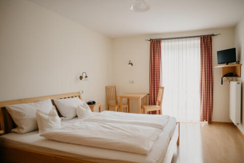 Die Zimmer sind mit Doppel- bzw. Einzelbett, Tisch, Kleiderschrank, TV und kostenlosem WLAN sowie teilweise mit Balkon ausgestattet.